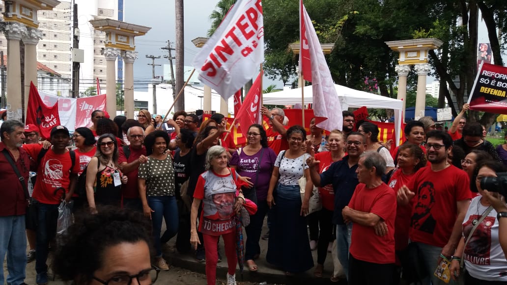 O ato convocado pela CUT/CE, demais centrais, as frentes Brasil Popular, Povo Sem Medo e movimentos sociais, reuniu milhares de pessoas em frente ao prédio do Serviço Federal de Processamento de Dados (Serpro), no Bairro São João do Tauape.